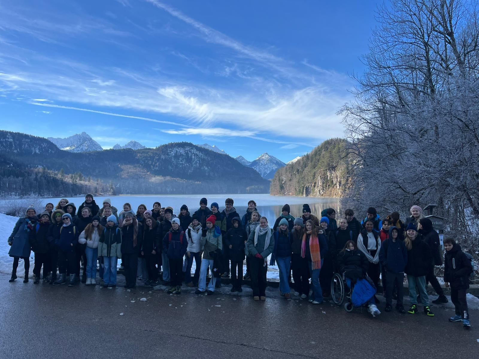 In der Adventszeit war an unserer Schule richtig was los: Unsere Partnerschule aus Bouc-Bel-Air war im Rahmen des Erasmus-Programms zu Besuch. Nach der Ankunft wurden unsere Gäste von der Schulleitung begrüßt, bevor sich alle beim gemeinsamen Essen schnell näher kennen lernten und erste Freundschaften entstanden. Der Besuch im Rathaus Feldafing bot spannende Einblicke in die lokale Politik. Mit frischen Brezen empfing das Partnerschaftskomitee, vertreten durch Frau Vossius, unsere Schülerinnen und Schüler. Hier geht es zum Artikel aus dem Starnberger Merkur . Auch ein Ausflug nach München stand auf dem Programm. Der gemeinsame Trip nach Hohenschwangau begeisterte mit märchenhaften Eindrücken und einem beeindruckenden Alpenpanorama. Besonders kreativ wurde es beim Erasmus-Projekt: Zusammen gestalteten die deutschen und französischen Schülerinnen und Schüler eine Wand, die die deutsch-französische Freundschaft bunt, modern und mit viel Teamgeist in Szene setzt – ein echter Blickfang in unserem Schulhaus! Zum Abschluss gab es eine Weihnachtsfeier, bei der alle bei Musik und süßen Leckereien gemeinsam die Austausch-Woche feierten. Vive l’amitié franco-allemande!