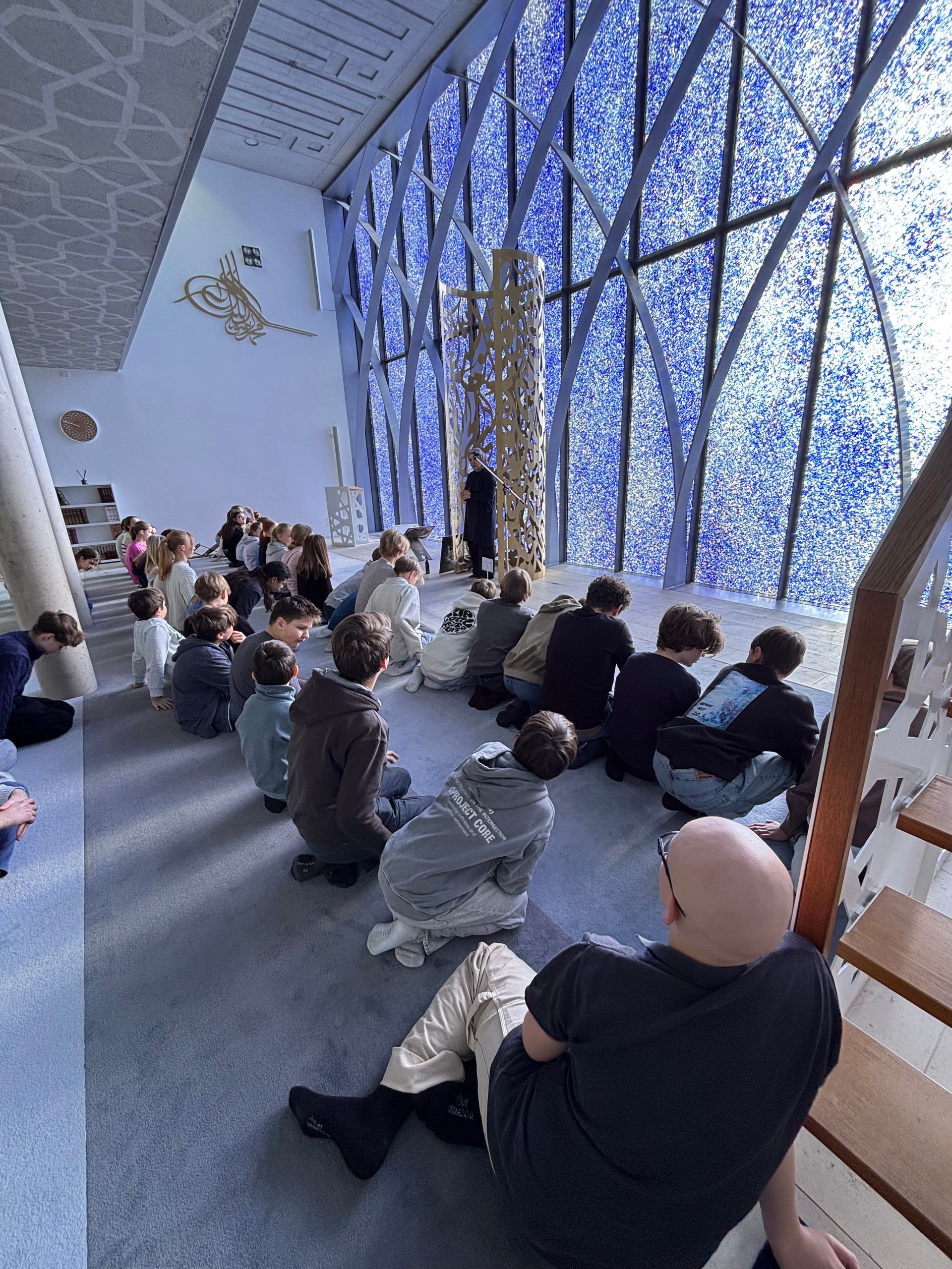 Am 21. Januar besuchen alle siebten Klassen die Moschee in Penzberg. Diese steht für einen weltoffenen Islam, wie uns Frau Yerli, die Referentin der Gemeinde, erklärt. Wir erfahren, wie Muslime beten, dass es bei der Pilgerfahrt nach Mekka rund um die Kaaba auch einmal sehr eng werden kann, und bekommen köstlichen türkischen Tee zum Trinken. Die Schülerinnen und Schüler lauschen dem interessanten und abwechslungsreichen Vortrag mit großem Interesse und stellen so viele Fragen, dass Frau Yerli diese kaum beantworten kann. Insgesamt war der Besuch wieder ein großer Gewinn und bietet Einblicke in den Islam, wie sie der Religionsunterricht alleine nicht vermitteln kann. Wir wollen nächstes Jahr wiederkommen!
