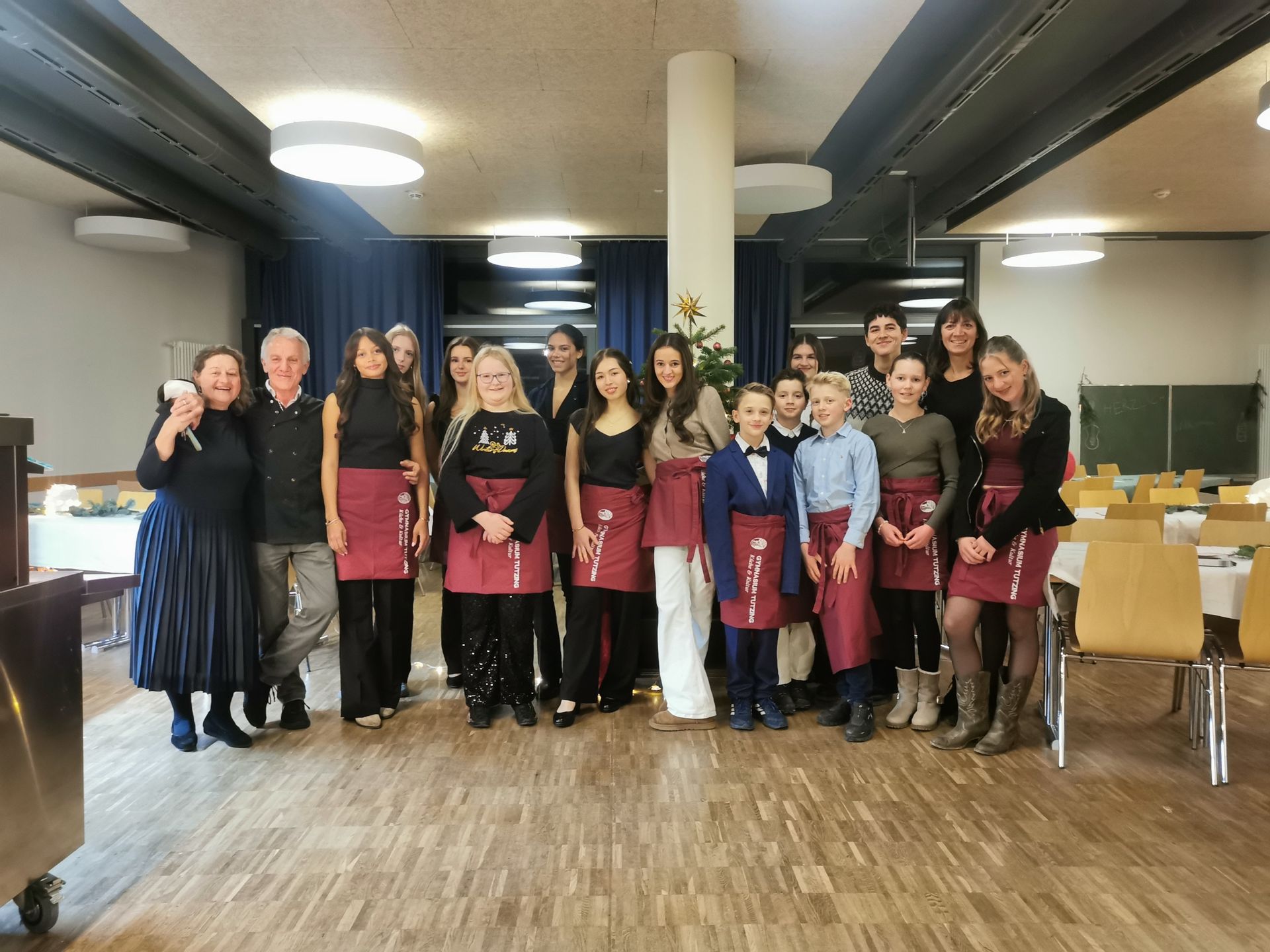 Mit einem stimmungsvollen Neujahrsempfang startete das Gymnasium Tutzing in sein Jubiläumsjahr zum 75-jährigen Bestehen . Gefeiert wurden nicht nur das neue Jahr, sondern auch internationale Freundschaften und der Auftakt zur Klimaschule Gymnasium Tutzing . Schulleiter Andreas Thalmaier begrüßte Schülerinnen und Schüler, Lehrkräfte und Ehrengäste darunter den stellvertretenden Landrat, Georg Scheitz, sowie den Bürgermeister Ludwig Horn. Besonders wichtig sei der Blick über Ländergrenzen hinweg: Neben der deutsch-französischen Partnerschaft mit Bouc Bel Air pflegt das Gymnasium Tutzing Austauschprogramme mit Schulen in Italien, Norwegen, Schweden, Spanien und der Partnerschule in Togo. Musik, Tanz und ein liebevoll vorbereitetes vegetarisches Buffet der Koch und Catering- AG von Margit Kleber sorgten für eine festliche Atmosphäre. Eindrucksvoll stellten Schülerinnen des Projekt-Seminars Klimaschule „eco.motion25“ ihre Aktionen zu den 17 Nachhaltigkeitszielen der Vereinten Nationen vor – von sozialen Hilfsprojekten für die Johanniter Weihnachtstrucker bis zu Aktionen für fairen Konsum, vegetarische Initiativen in der Mensa, Spendenaktionen für das Kinderhospiz in Polling sowie einen Workshop zu fair fashion. Unterstützt wird die Schule auf dem Weg zur Klimaschule dabei unter anderem vom Zentrum für Umwelt und Kultur Benediktbeuern (Don Bosco), dem Helmholtz Zentrum München und dem Mobilitätsstab des Landratsamtes. Besonders bewegend war der Auftritt der Theater-AG: Ein Text des Dichters Sheikh Saadi, in mehreren Sprachen vorgetragen, erinnerte daran, dass alle Menschen miteinander verbunden sind: „Alle Menschen sind Glieder eines Ganzen, aus einem Geist und einer Seele geschaffen. Wenn einer Schmerz erleidet, so empfinden ihn alle.“ Das Gedicht schmückt die Eingangshalle des Gebäudes der Vereinten Nationen in New York. Der Neujahrsempfang war insgesamt ein starkes Zeichen für Menschlichkeit, Toleranz und internationale Gemeinschaft. Wir danken dem Förderverein für seine finanzielle Unterstützung und dem Starnberger Merkur für seine wertschätzende Berichterstattung (zum Artikel) !