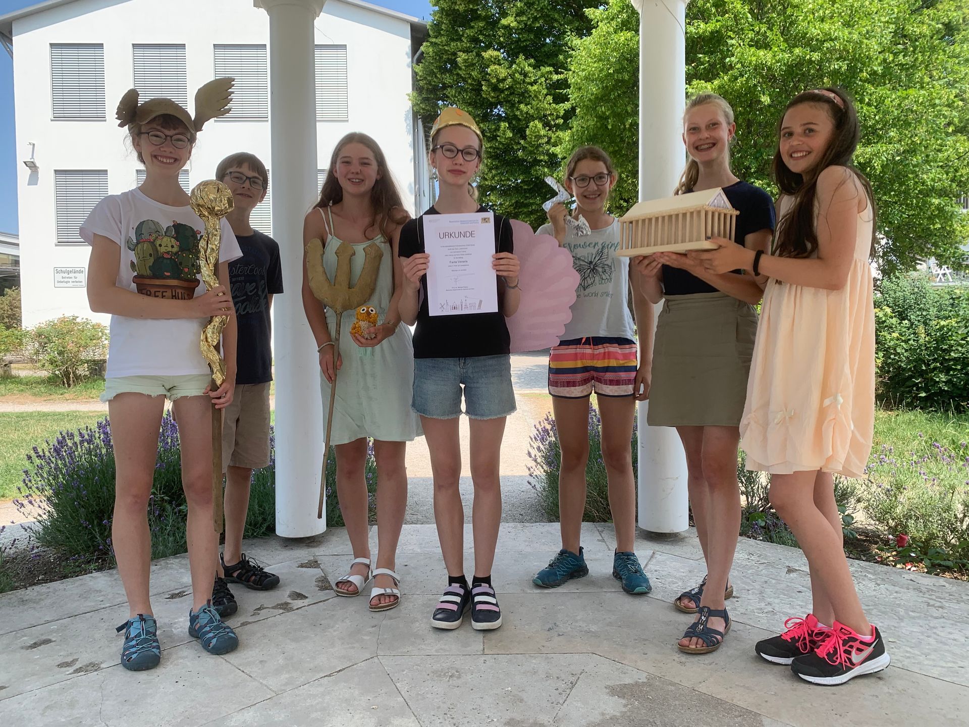 Weil der Mensch aber nun einmal ein Sinnenwesen ist und Latein nicht nur graue Theorie bleiben soll, bieten wir auch praktisch-anschauliche Zugänge zur Antike: Das Gießen von Wachstafeln, ein Briefwechsel mit einer italienischen Partnerschule (auf Deutsch, Italienisch und Latein…), das Gestalten von Miniaturmodellen der berühmten sieben Weltwunder oder die Teilnahme an einer römischen Cena mit Originalrezepten lassen die Vergangenheit mit allen Sinnen erfahrbar und lebendig werden.
